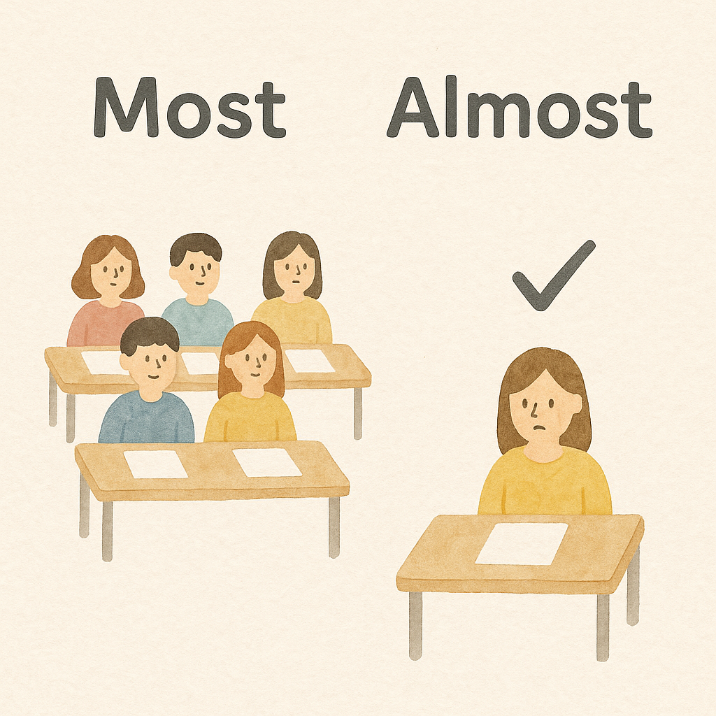 most almost 차이가 어렵게 느껴졌는데, 예문으로 비교해보니까 생각보다 단순하더라고요.