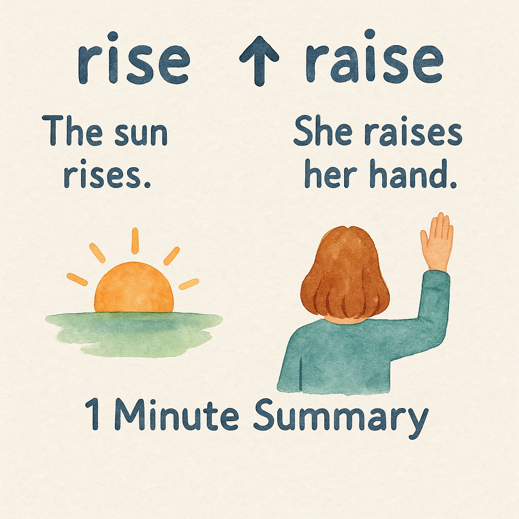 rise“스스로 올라가다”이고, raise“무언가를 올리다”예요.